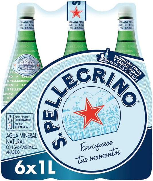 San Pellegrino Sparkling Natural Carbonated Mineral Water, 1 Litre (Pack of 6)